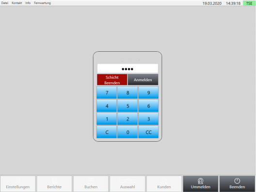 Um ein Personal komplett abzumelden erst auf „Ummelden“ klicken, dann Personalnummer eingeben und auf „Schicht Beenden“ klicken.